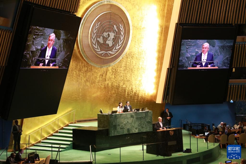 9月9日,联合国秘书长古特雷斯在第80届联大第一次全会上讲话。新华社记者 谢锷 摄