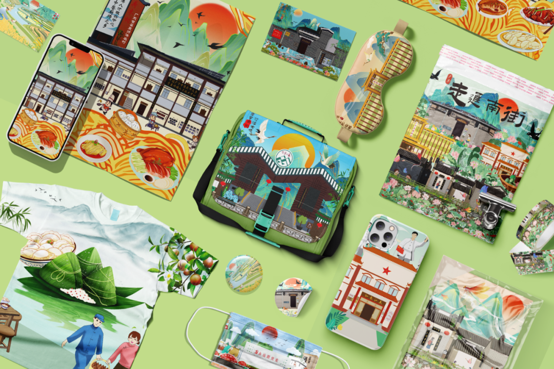 该项目以插画为表达工具,融合复古手绘笔触与现代设计巧思,勾勒出南街古韵。每一笔都诉说着时光故事,让人沉思历史。同时,项目捕捉古街新活力,将传统老店与新铺相互映衬,形成传统与现代和谐共生的美妙图景。