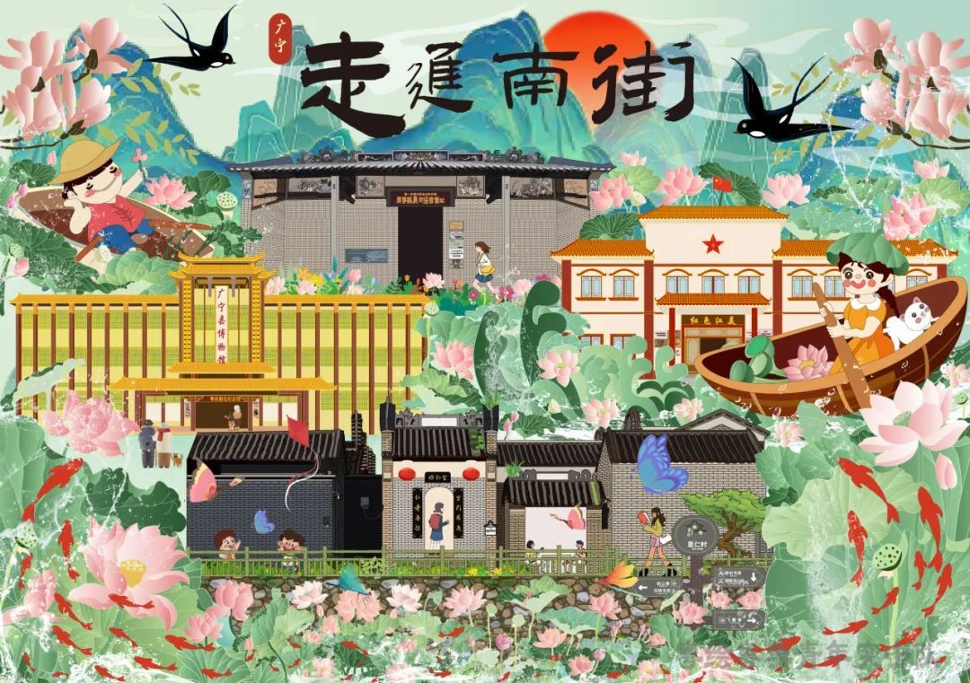 设计南街形象手册项目是以肇庆市广宁县南街街道为实践载体,立足“绿美乡村”建设目标,结合南街红色村、厨师村等特色,依托岭南古建筑群和自然生态基底,打造具有地域标识度和文化内涵的文创标识体系,提升街道文化传播力和旅游吸引力,助力当地经济社会全面发展。